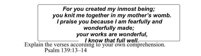 For You Created My Inmost Being You Knit Me Together In My Mother S Womb I Praise You Because I Am Fearfully And Wonderfully Made Your Works Are Wonderful I Know That Full from unitedrevival.com Maybe you would like to learn more about one of these? We did not find results for: Check spelling or type a new query.